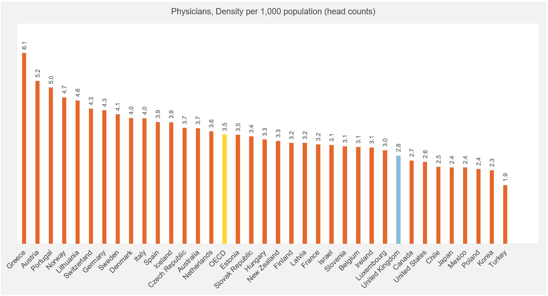 Source: OECD Health Statistics 2019 and Office for National Statistics.