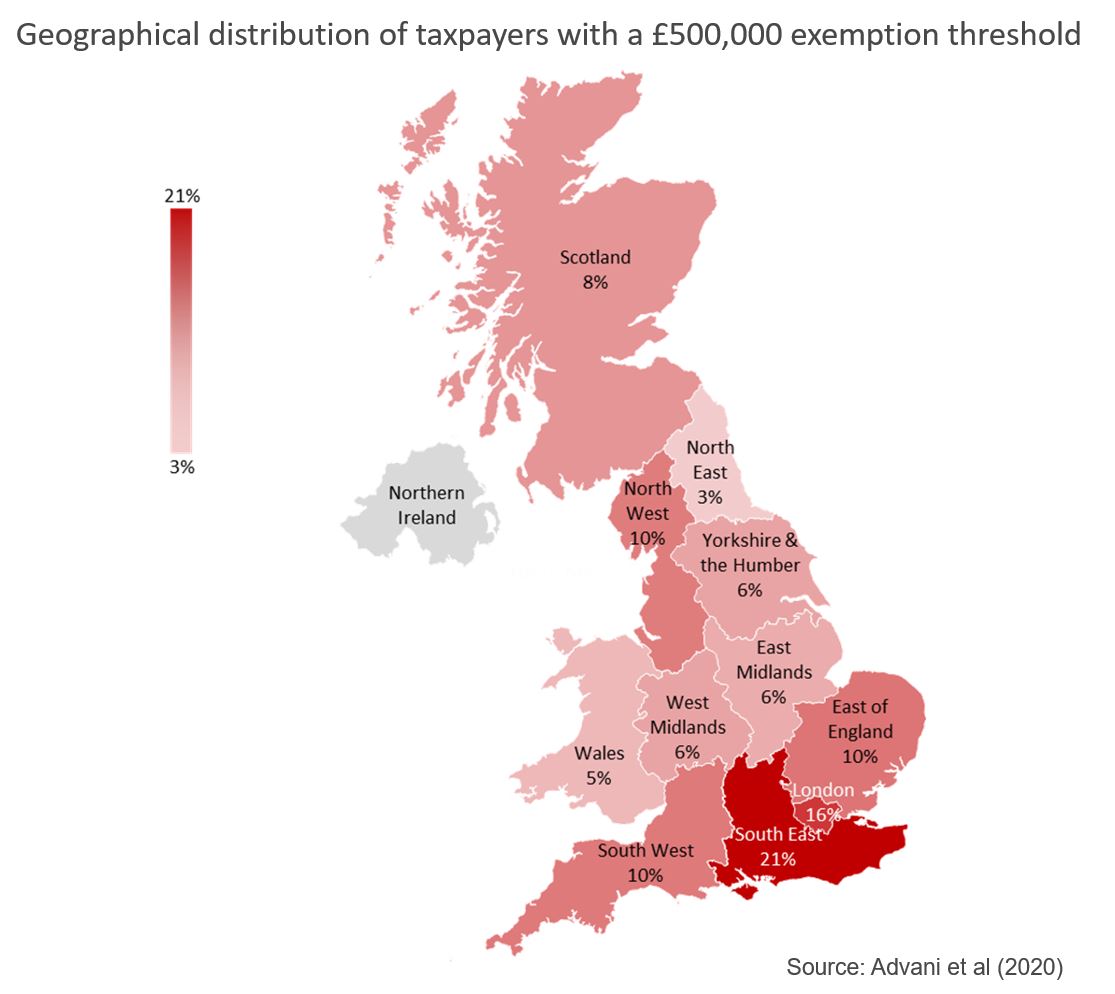 On the Observatory, we’re publishing summaries of some of the evidence the Commission has pulled together. Arun and colleagues outline their estimates of how much revenue such a tax might raise (including a tax simulator where you can plug in your chosen tax rates and thresholds), and where and on whom the main burden might fall (see figure below). Nick O’Donovan at the Future Economies research centre explores the varying degrees of success of other countries’ efforts to introduce one-off wealth taxes or capital levies in the aftermath of major crises. And economic historian Martin Chick at Edinburgh asks whether the UK’s past experiences suggest that wealth taxes can help to improve the public finances.
